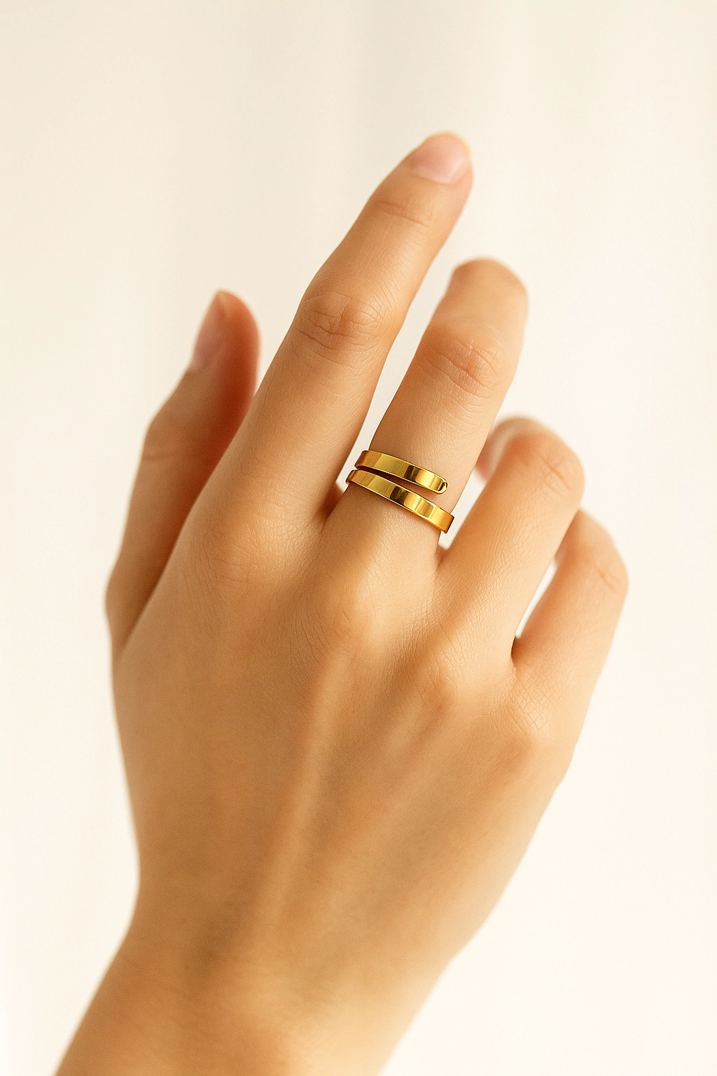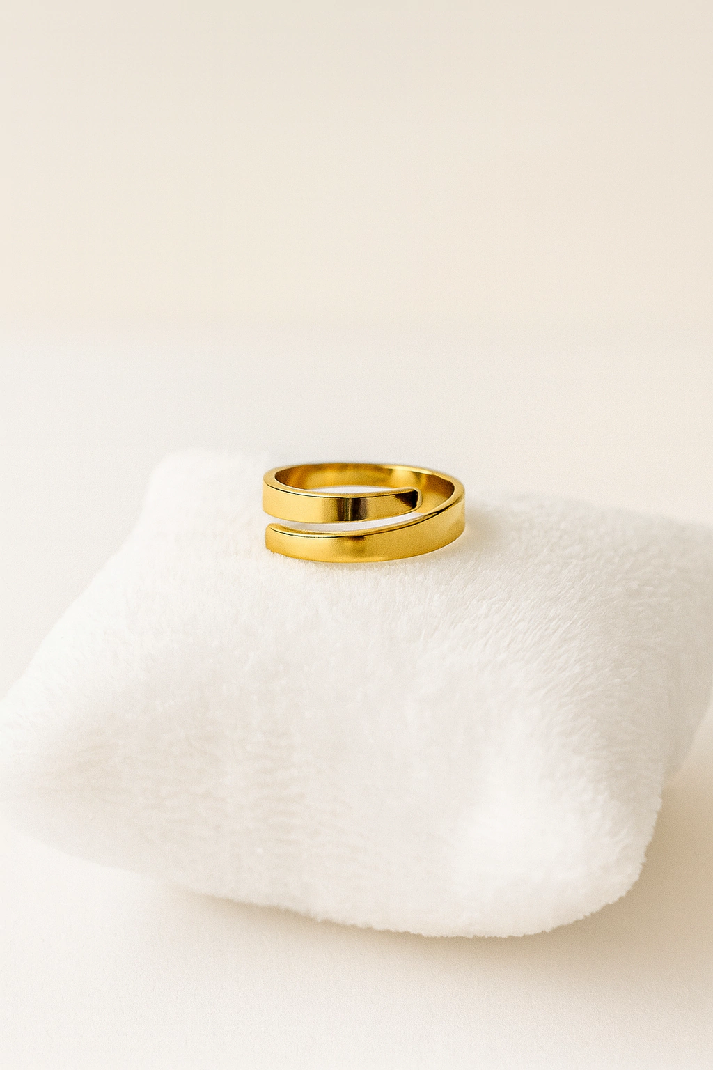 Um lindo anel com design minimalista, folheado, numeração 16/17